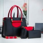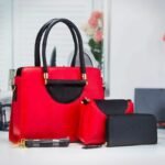 Cet ensemble élégant comprend trois accessoires assortis, parfaits pour les amateurs de mode. Le sac à main bleu clair est orné de poignées et d’accents rouges, avec des détails métalliques dorés et le nom de la marque embossé en or sur le devant. Il est accompagné d’une petite pochette assortie et d’un portefeuille long rouge. Idéal pour une utilisation quotidienne ou pour des occasions spéciales, cet ensemble combine style et fonctionnalité, ajoutant une touche de couleur et d’élégance à votre tenue.